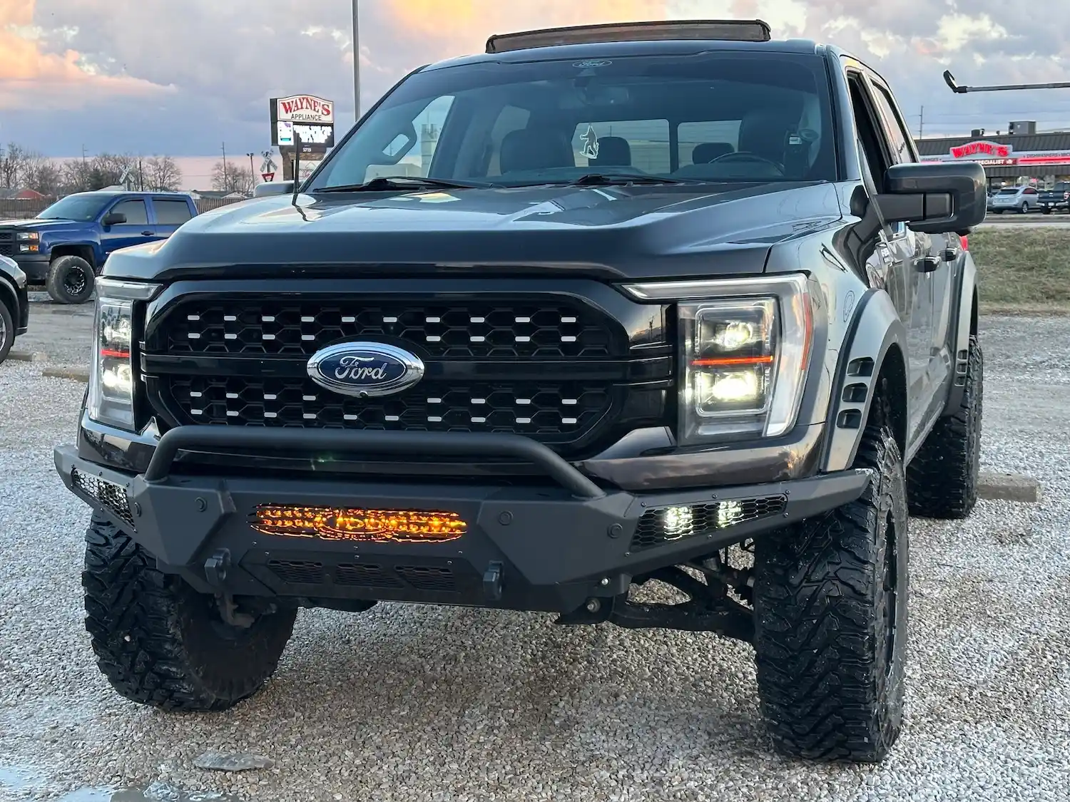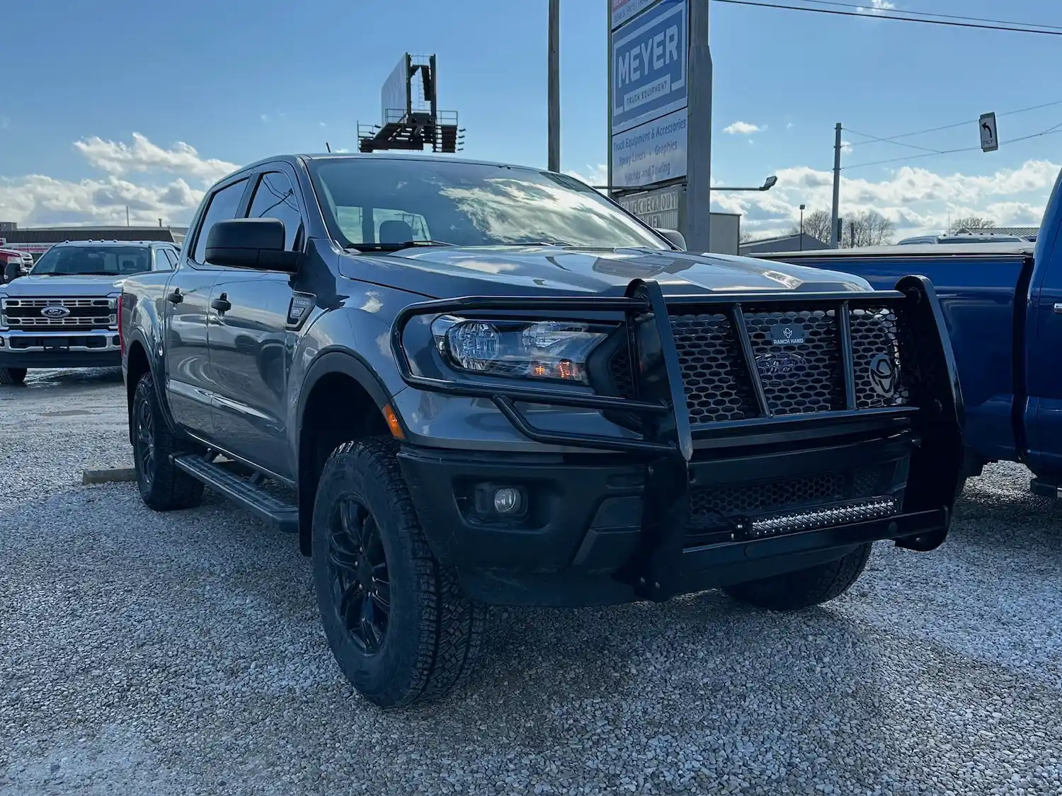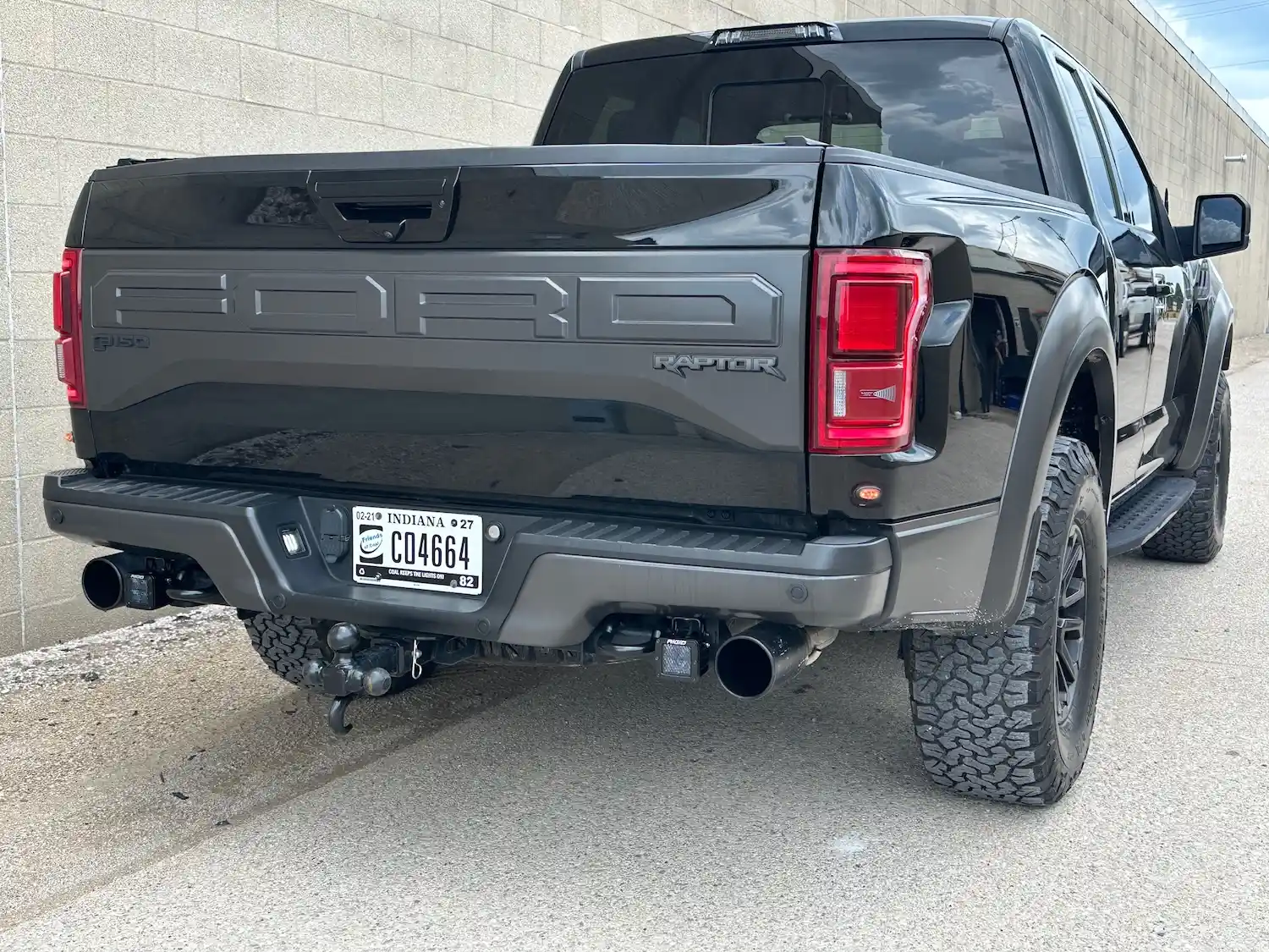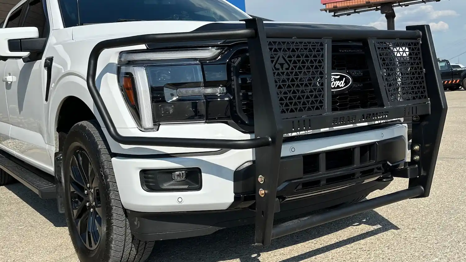 Dual rear wheel Knapheide service body, custom paint job, Tommygate liftgate with aluminum platform, custom build material rack and spray in bed liner.