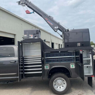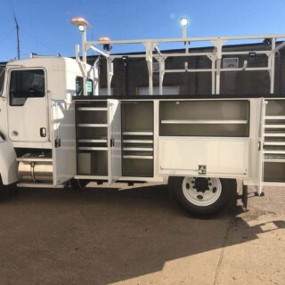11′ Knapheide PGTD. This combination of a gooseneck hauler and service truck provides unmatched storage capability with rear underbody and raised front compartments, along with smooth opening and closing flip-top units.